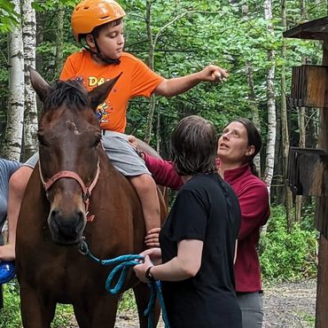 ***NB: L'équithérapie ne se pratique pas seulement en selle. Selon les limites/besoins du cavaliers, les conditions météo, la santé du cheval, les activités varient entre les soins au cheval jusqu'à l'apprentissage de techniques en selle.